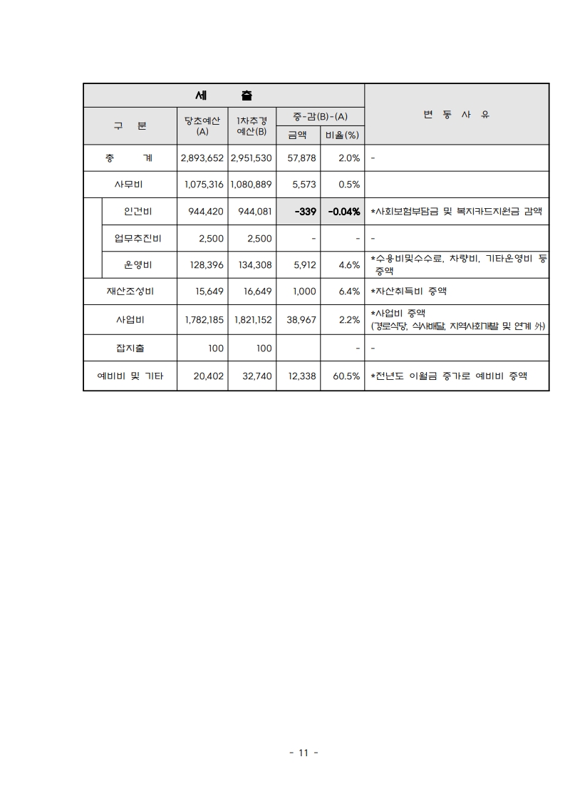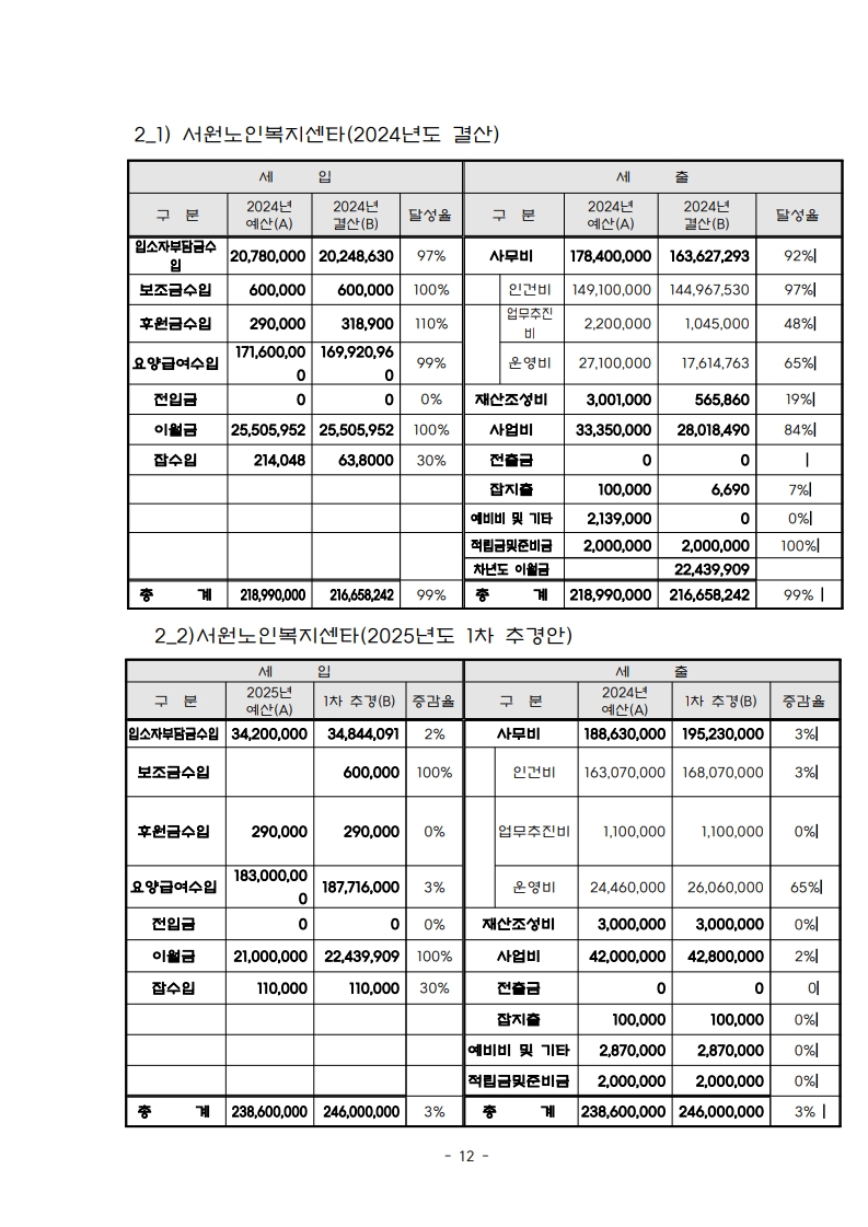 복지사업 투명행정을 위한 예결산자료 정보공개 페이지