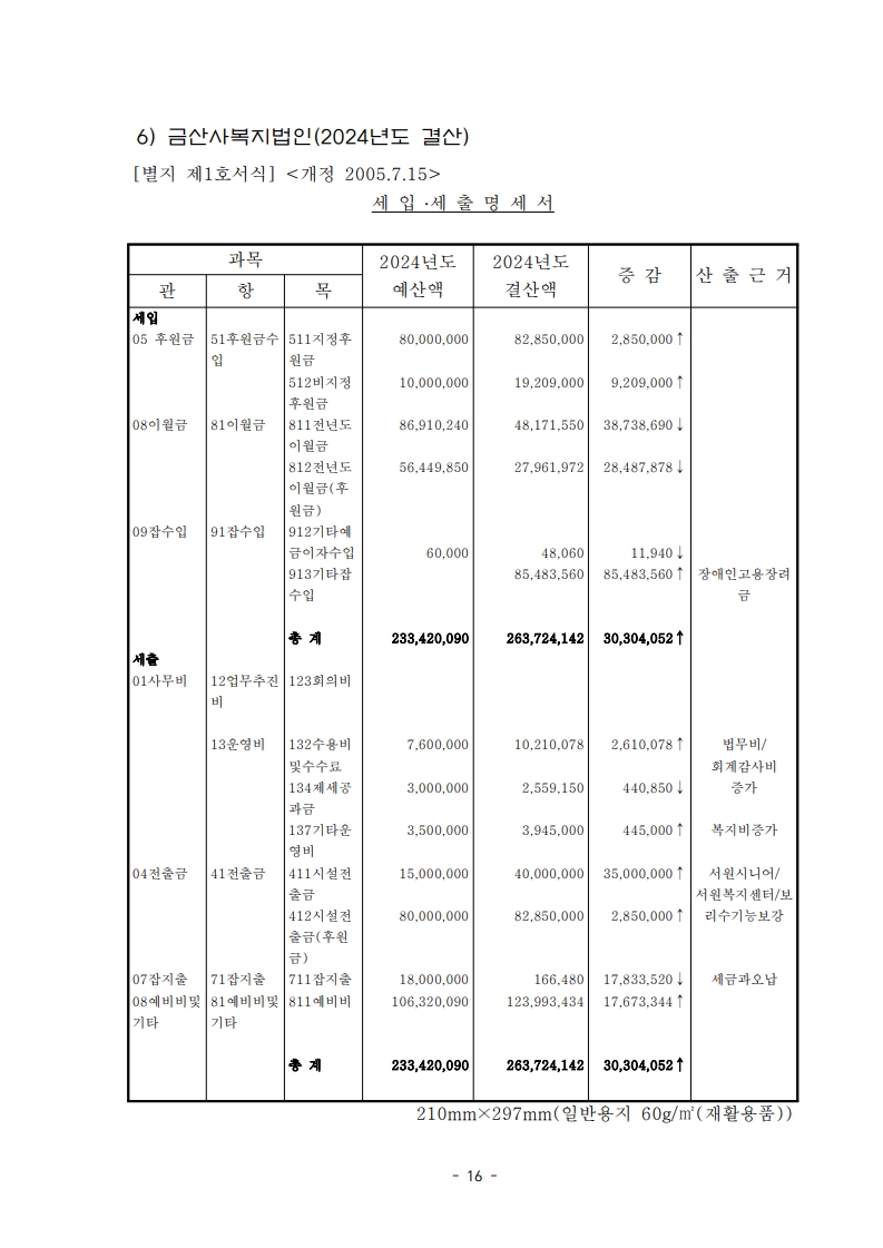 [금산사복지원]2025년 6월 후원금수입 및 사용결과